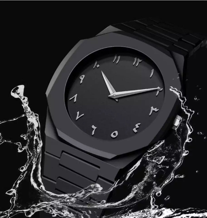 اشتري الآن أفخم الساعات بالأرقام العربية واشتري ساعة من الكربون الأسود بأرقام عربية. إنها قطعة أنيقة وعصرية تضيف لمسة من الأناقة إلى إطلالتك. تأتي هذه الساعة بتصميمها العصري والمبتكر، وهي مثالية لمن يفضلون اللغة العربية في القراءة. اجعل هذه الساعة المصنوعة من الكربون الأسود والمزودة بأرقام عربية جزءًا من مجموعتك الشخصية اليوم واحصل عليها الآن! مواصفات أفضل الساعات بالأرقام العربية: نوع المنتج: ساعة من الكربون الأسود بأرقام عربية قرص الساعة أسود سوار من الكربون الأسود الحجم: 40 ملم